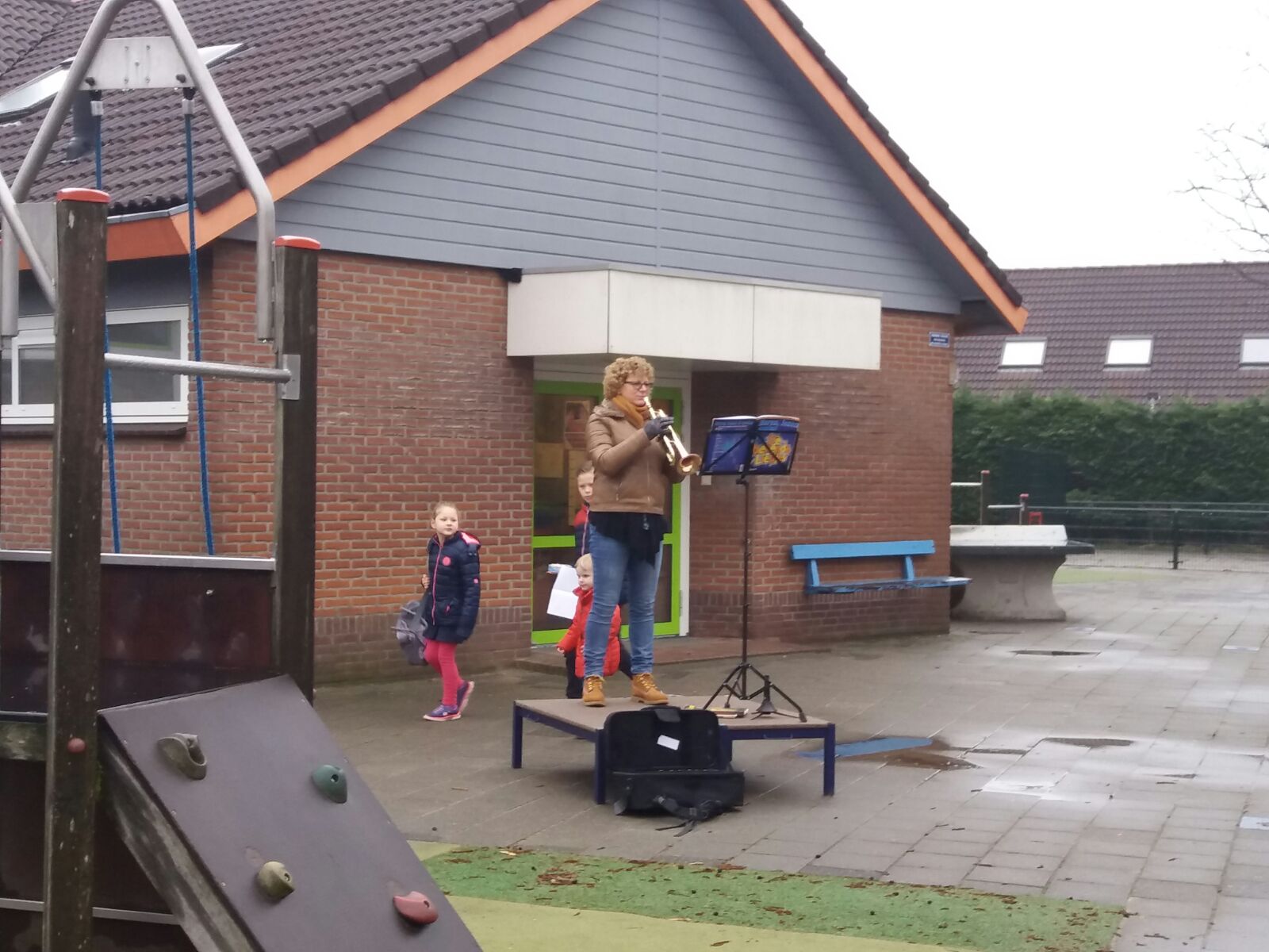 Maandagochtend 7 maart werden de kinderen van D'n Bogerd verrast door "straatmuzikanten" op het schoolplein! Muzikanten van muziekvereniging Prinses Marijke traden op om zo het muziekproject op ludieke wijze te openen.